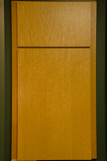 Quincy Raised Panel Door/ Adams Flat Panel Drawer, ¼ Sawn White Oak Wood, Square Edge, Natural Finish
